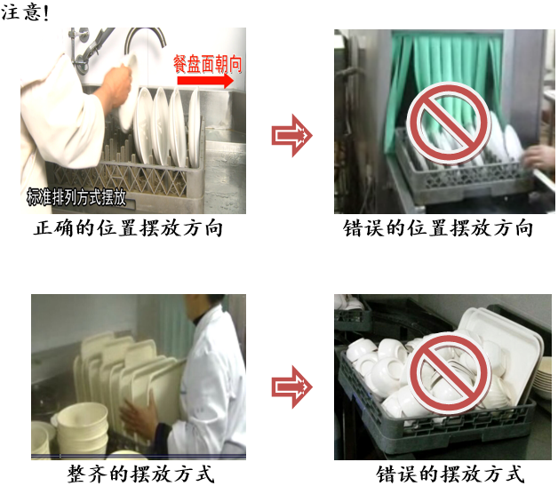 2.有弧度的餐具请放置倾斜角度以利排水。